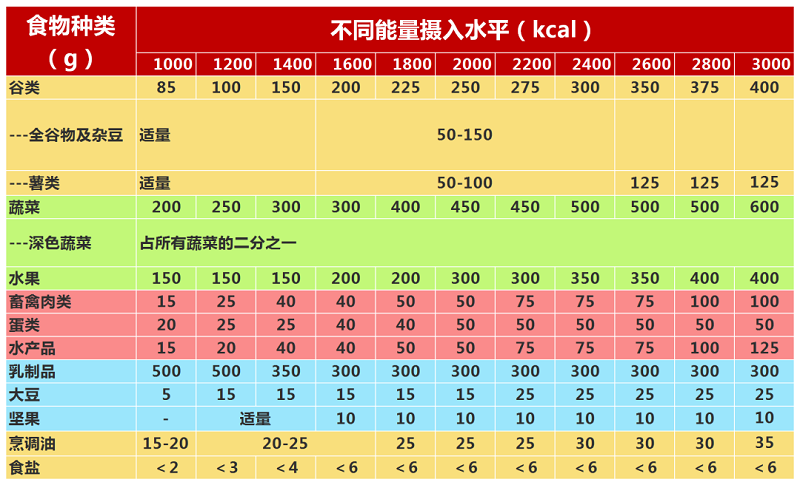 輕(qing)、中度(du)身體活動水平(ping)成年男性每日所需能(neng)量2400~2700kcal,女性為2100~2400kcal。早餐占一天總能(neng)量的25%~30%,午餐占40%,晚(wan)餐占30%~35%。