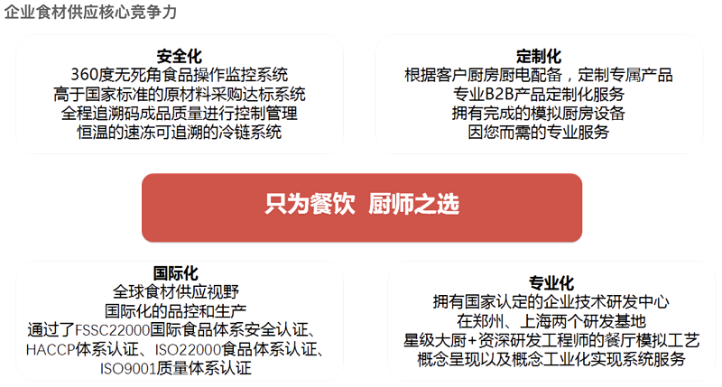每家企業的成功,與其自(zi)身核(he)心戰略(lve),包括自(zi)身關(guan)鍵(jian)要素有關(guan)。中(zhong)膳(shan)集團創(chuang)始(shi)人李力強表示,經過對標這些(xie)企業,中(zhong)膳(shan)集團在構建自(zi)身餐飲(yin)供應(ying)鏈服務新生態的同時,有了(le)全新的發展戰略(lve),在過去做(zuo)了(le)很多(duo)泛(fan)采,還未做(zuo)集采,而今年(nian)在廣州開始(shi)籌備集采。