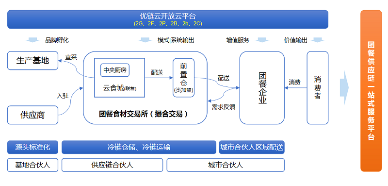 中膳(shan)優鏈云(yun)(yun)供(gong)(gong)應鏈商業(ye)模式應運而生(sheng),未來(lai)在全國將會打(da)造(zao)更多的云(yun)(yun)食城智慧(hui)產業(ye)園:通過(guo)中央(yang)廚房(fang),解決現(xian)時一些高附加(jia)值加(jia)工程序(xu),以此配送至前(qian)端(duan)作支(zhi)撐,全部采取類(lei)加(jia)盟模式,建(jian)立團餐(can)食材交易所來(lai)進行撮合(he)交易。通過(guo)解決源頭(tou)生(sheng)產基地(di)和供(gong)(gong)應商的品牌孵(fu)化,構建(jian)平臺體系(xi),吸引供(gong)(gong)應商入(ru)駐。