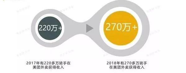此外(wai)(wai),外(wai)(wai)賣也拉(la)動就業,某一方面解決了(le)就業難題。以外(wai)(wai)賣為例(li),2018年共有270多萬騎(qi)手(shou)在美團外(wai)(wai)賣獲得收入,比2017年增加(jia)了(le)近50萬。其(qi)中,有67萬騎(qi)手(shou)來(lai)自貧困(kun)縣(xian),覆蓋了(le)全國94%的貧困(kun)縣(xian)。