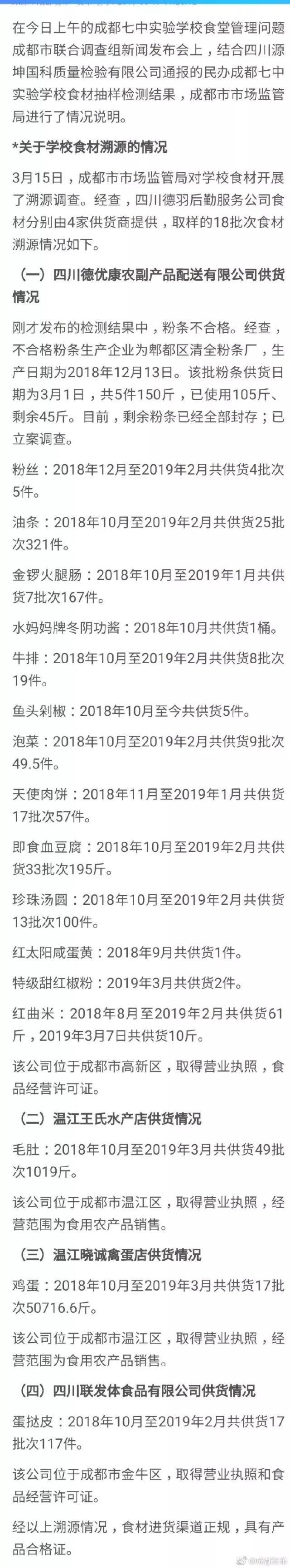 成都市市場監管局:溯源情況顯示食(shi)材進貨(huo)渠道正規、具有產品(pin)合格證